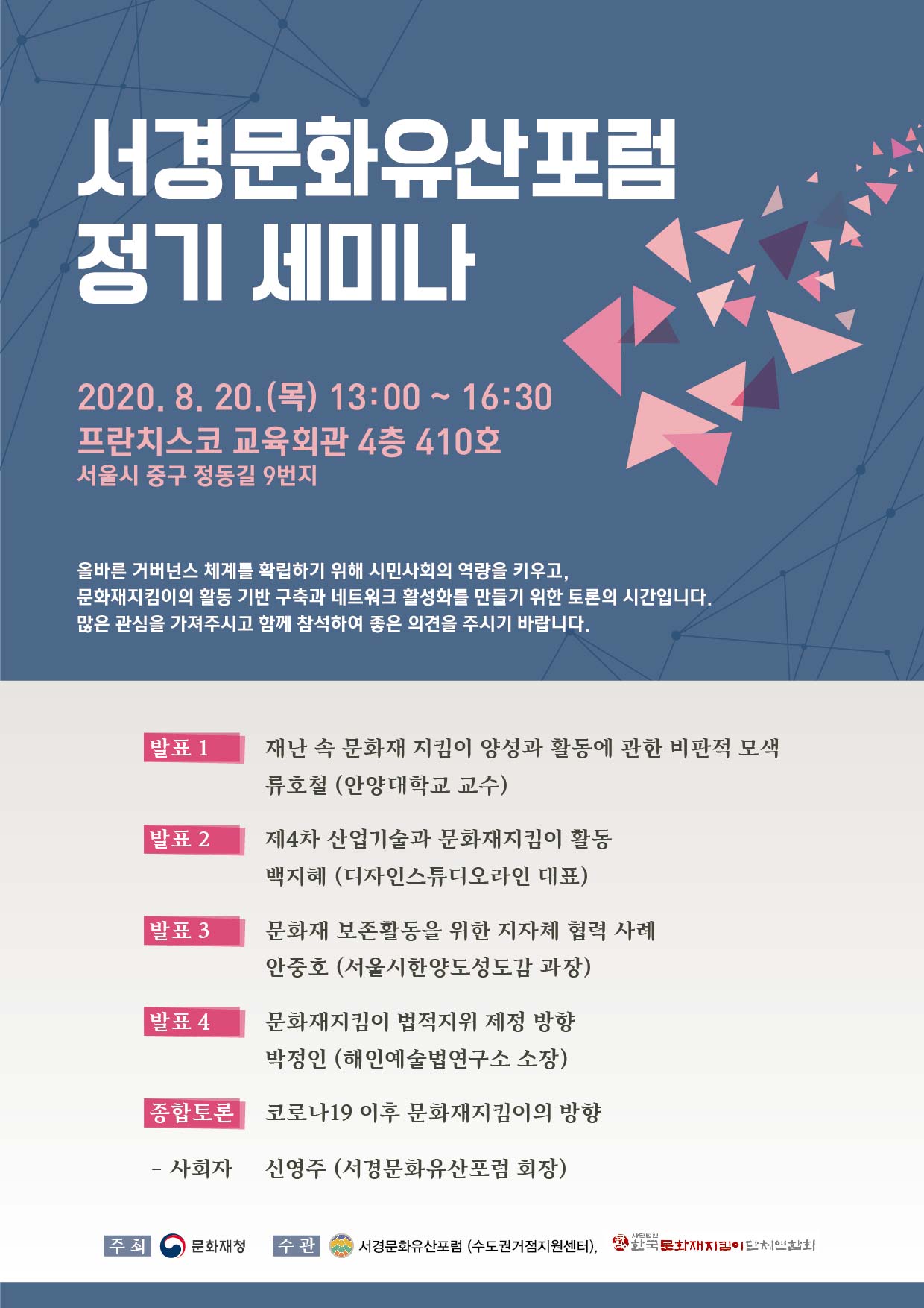 | 이전 | 제8회 청소년 문화유산 연구 및 보전활동 발표대회 안내 | 한지연 | 2020-08-28 |