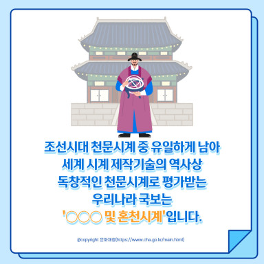 커뮤니티 카드뉴스 제목11월 첫째주 문화재뉴스2021-11-02 11:30카테고리연합회 소식작성자 한지연 정답 : 혼천의#한국문화재지킴이단체연합회#문화재지킴이#문화재뉴스#혼천의#혼천시계#포스팅재배포금지 목록 댓글 [0] 댓글작성자(*)비밀번호(*)자동등록방지(자동등록방지 숫자를 입력해 주세요)내용(*) 댓글 등록 더보기이전11월 둘째주 문화재뉴스(문화재지킴이 전국대회) 한지연 2021-11-09다음10월 다섯째주 문화재뉴스 한지연 2021-10-26 Powered by MangBoard | 망보드 스토어