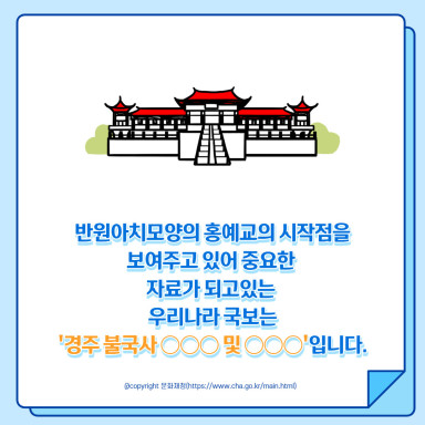 커뮤니티 카드뉴스 제목12월 넷째주 문화재뉴스2021-12-21 10:51카테고리연합회 소식작성자 한지연 정답 : 청운교, 백운교#한국문화재지킴이단체연합회#문화재뉴스#경주#불국사#청운교#백운교#포스팅재배포금지 목록 댓글 [0] 댓글작성자(*)비밀번호(*)자동등록방지(자동등록방지 숫자를 입력해 주세요)내용(*) 댓글 등록 더보기이전12월 다섯째주 문화재뉴스 한지연 2021-12-28다음12월 셋째주 문화재뉴스 한지연 2021-12-14 Powered by MangBoard | 망보드 스토어