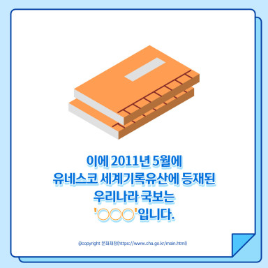 커뮤니티 카드뉴스 제목12월 다섯째주 문화재뉴스2021-12-28 14:02카테고리연합회 소식작성자 한지연 정답 : 일성록#한국문화재지킴이단체연합회#문화재뉴스#유네스코#세계기록유산#포스팅재배포금지 목록 댓글 [0] 댓글작성자(*)비밀번호(*)자동등록방지(자동등록방지 숫자를 입력해 주세요)내용(*) 댓글 등록 더보기이전1월 4일 문화재뉴스 한지연 2022-01-04다음12월 넷째주 문화재뉴스 한지연 2021-12-21 Powered by MangBoard | 망보드 스토어