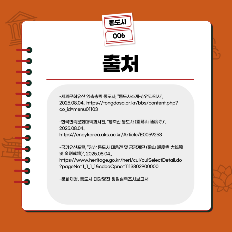 커뮤니티 청년 유네스코 세계유산 지킴이 활동 청년 유네스코 세계유산 지킴이 활동 청년 유네스코 세계유산 지킴이 활동 20252024 제목'양산 통도사에 대해 알아보자' 블로그글 작성_산사랑해2025-10-23 02:06카테고리충북문화유산지킴이 > 산사랑해 > SNS 게시SNS링크https://blog.naver.com/san_saranghae/223957861513작성자김동현 2025 청년 유네스코 세계유산 지킴이 '산사랑해'입니다. 2025.08.04. 유네스코 세계문화유산인 '산사, 한국의 산지 승원'을 알리기 위해 블로그에 그 중 하나인 양산 통도사를 소개하는 글을 작성해 업로드하였습니다. '양산 통도사에 대해 알아보자!'라는 제목으로 통도사의 기본사항, 개요, 주목할 만한 점, 창건 설화를 소개하는 글을 카드뉴스와 함께 업로드하여, 블로그를 통해 보다 더 정확하고 자세하게 통도사에 대해 전달하고자 하였습니다. #산사랑해#통도사 목록수정삭제답변글쓰기 댓글 [0] 댓글작성자(*)비밀번호(*)자동등록방지(자동등록방지 숫자를 입력해 주세요)내용(*) 댓글 등록 더보기이전'보은 법주사에 대해 알아보자' 블로그글 작성_산사랑해김동현2025-10-23다음봉정사 모니터링위승비2025-10-22 Powered by MangBoard | 망보드 스토어