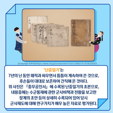 커뮤니티 카드뉴스 제목8월 둘째주 문화재뉴스2021-08-10 14:02카테고리연합회 소식작성자 한지연 #한국문화재지킴이단체연합회#문화재지킴이#문화재뉴스#난중일기#포스팅재배포금지 목록 댓글 [0] 댓글작성자(*)비밀번호(*)자동등록방지(자동등록방지 숫자를 입력해 주세요)내용(*) 댓글 등록 더보기이전8월 셋째주 문화재뉴스 한지연 2021-08-19다음2021 한지연 문화재 카드뉴스(백제 금동대향로) 한지연 2021-08-04 Powered by MangBoard | 망보드 스토어